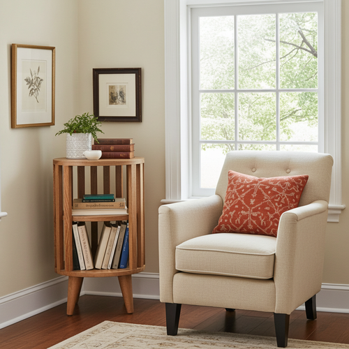 Mini Darcy Oak-ish Nightstand with Curved Edges -